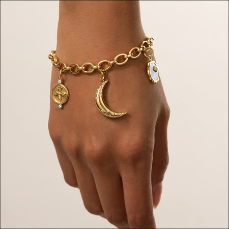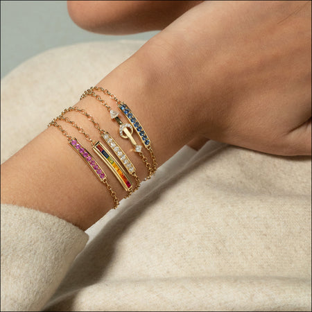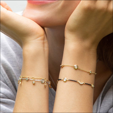 While great on their own, our bracelets are the perfect layering companion to your watch, bangles, or other everyday favorites. The more layered, the better. Whether it’s a Mariyln, Poesy Bracelet, or Custom Charm Bracelet, the layered wrist is a look that’s unique to you.