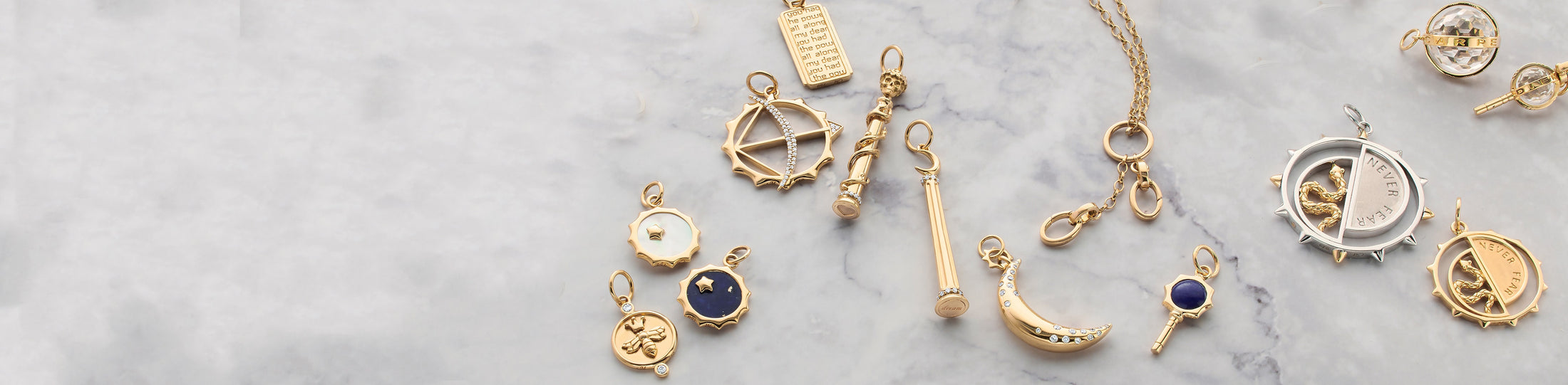 Many are available in solid 18K gold, others have extensive diamond accents as part of their designs so that diamond charms are an option when you create the charm bracelet or charm necklace styles that will tell your story.%expanded-desktop%