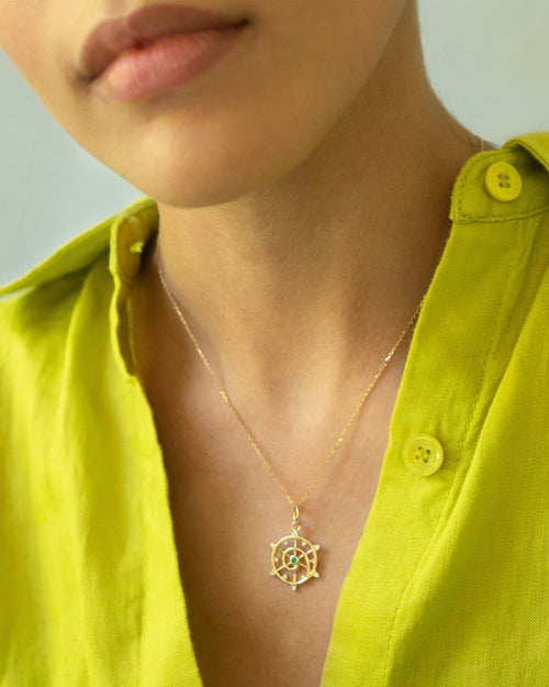 "Time is Precious" Mini Sundial Necklace with Green Enamel and Diamond