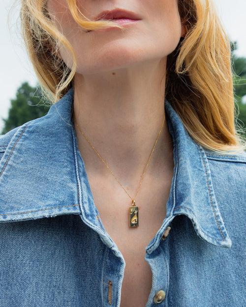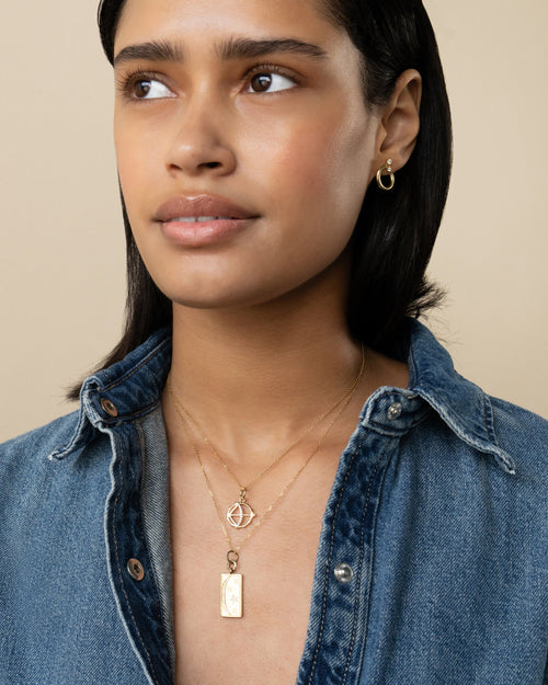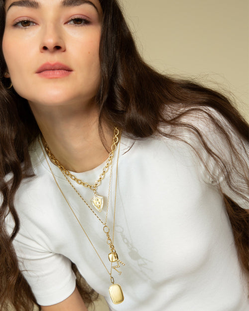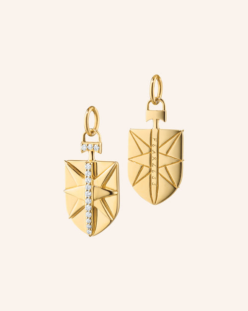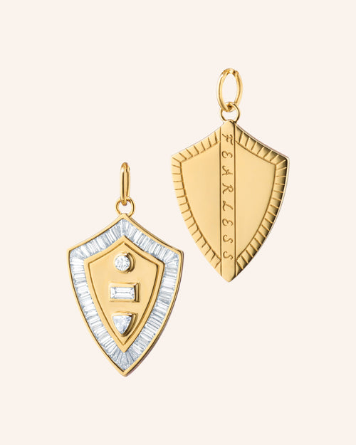 "Fearless" Shield 18K Gold Necklace with Hand Cut Diamonds