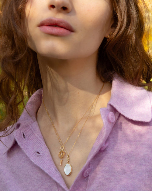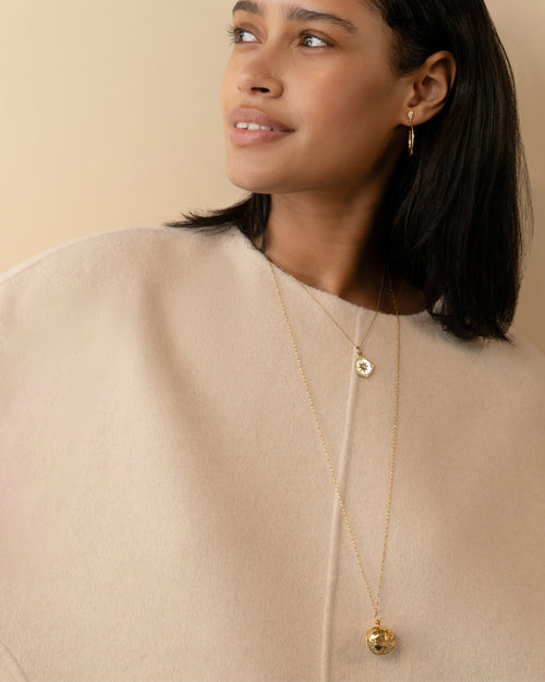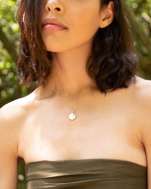 Mini "Happiness" Sun Necklace with Mother of Pearl and Diamonds