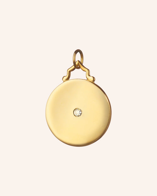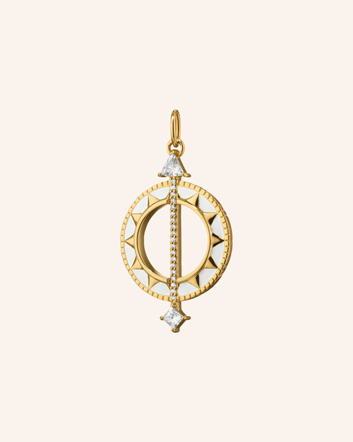 Mini "Time is Precious" Sundial Necklace with White Enamel and Diamond