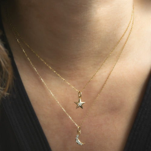 "Sun, Moon, and Stars" 18K Gold Necklace with Diamonds