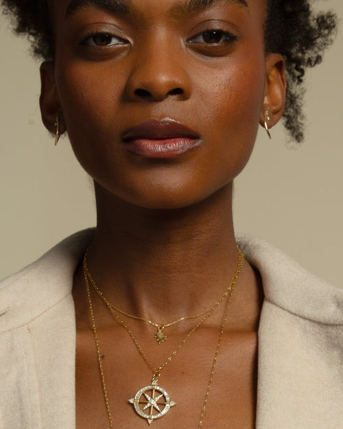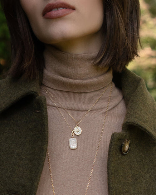 Large "Points North" Compass Necklace with Pavé Diamonds