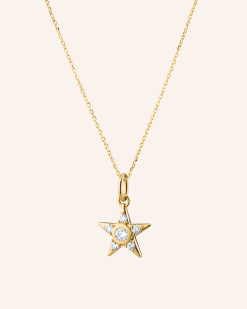 "Happiness" Sun and Star Necklace with Mother of Pearl and a Diamond
