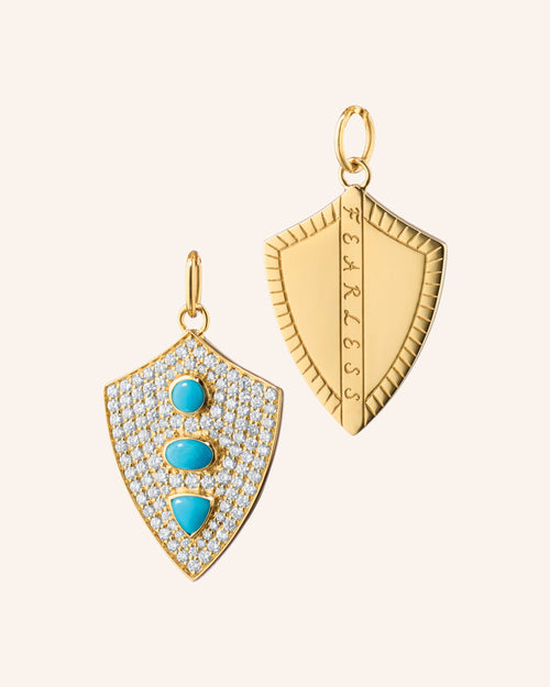 "Fearless" Shield Necklace with Turquoise and Diamonds