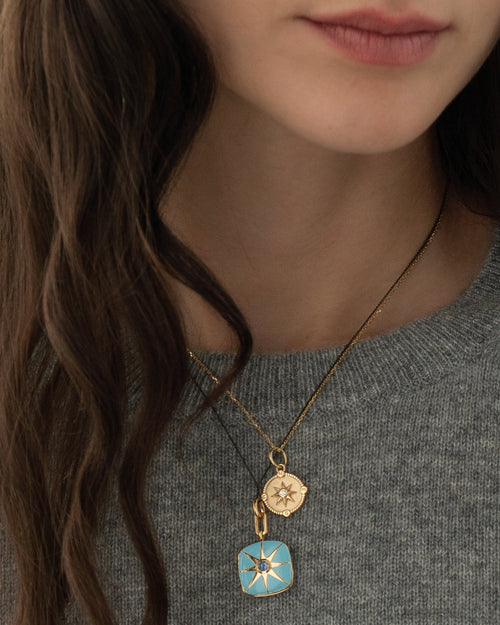 Mini "Adventure" Compass Necklace with Pavé Diamonds