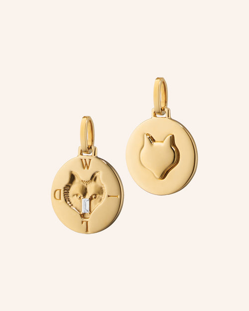 "Wild" Wolf 18K Gold Intaglio Necklace with Diamond