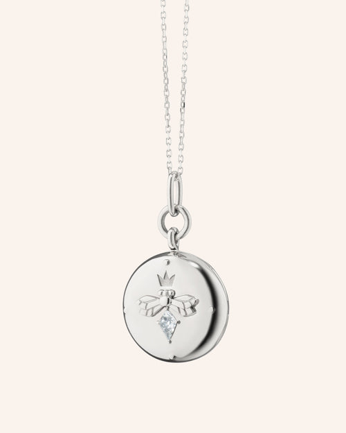 We use gemstones throughout our collection in everything from our special edition 18k gold high jewelry designs to our sterling silver and gold everyday birthstone necklaces. These gemstone necklaces feature emeralds, sapphires, rubies, tourmalines and so many other stones. The list goes on. The more precious gemstones like blue sapphires, emeralds and rubies will be found in our 18k gold collections. These stones are set into gemstone pendants that are combined with a variety of chain styles to create that perfect gemstone necklace. In sterling silver, you will find gemstone jewelry pieces that feature stones like white sapphires, blue topaz, and aquamarines to name a few. Since lockets are a foundation of our collection, we of course offer many gemstone locket styles. Our Infinity lockets are classic styles that offer the finest cornflower blue sapphire, emerald and ruby colors in gold for example, and a brilliant blue topaz in sterling silver. On our High Jewelry collection page, you will always find the latest offering of our special edition gemstone lockets as we introduce new style on a monthly basis. If there is a particular gemstone that is your favorite, please feel free to reach out to one of our MRK stylists at conciege@monicarichkosann.com to inquire about creating your own custom gemstone locket. We love working with clients through our Custom Design Studio to bring their ideas to life.