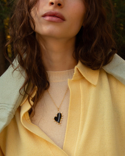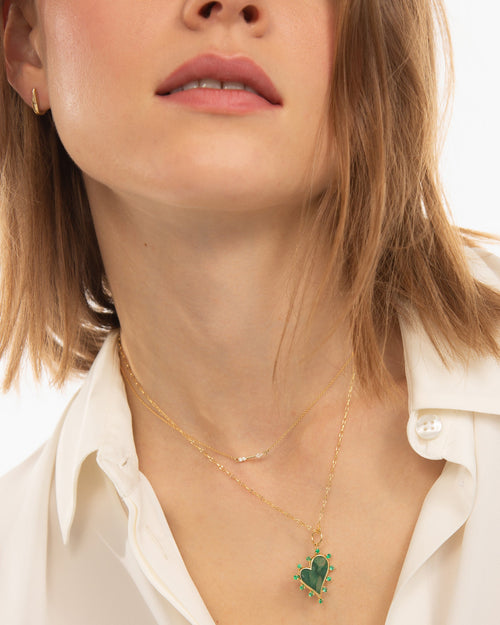 • Mother of Pearl Classic Heart 18K Gold Necklace Mother of Pearl Classic Heart 18K Gold Necklace and Points North Necklace