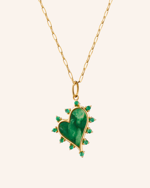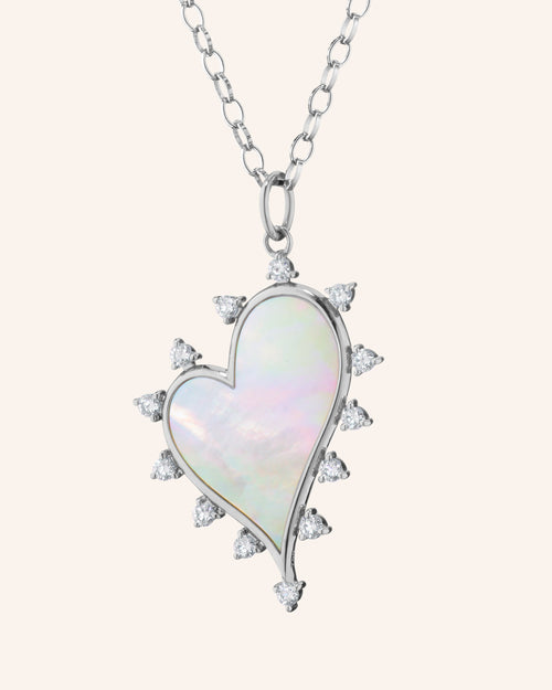• Large Mother of Pearl Gemstone Heart Audrey Necklace