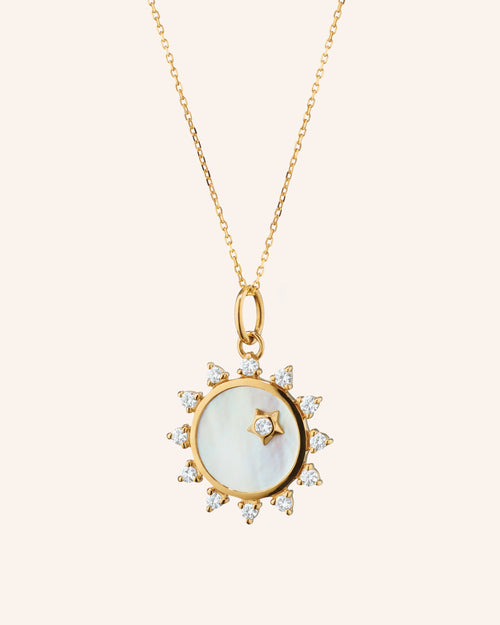 Mini "Happiness" Sun Necklace with Mother of Pearl and Diamonds