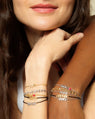 OOF! We’re so excited to share PEANUTS® x MRK, in celebration of 75 years of Peanuts®. These Bracelets feature iconic words from the characters we know and love. The words are an empowering celebration of life, reminding us of the importance of our friends, journeys, and adventures. The styles are designed to be part of your every day; to collect, layer and share! Designed in 18K Gold and Sterling Silver, wear them 24/7, with anything in your bracelet stack.