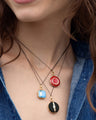 What's your story? Tell it in color. Give your story style with our Black Enamel Gold Vermeil Round Locket with a center baguette white sapphire. Perfect on its own or layered with your other favorite pieces. Locket holds two images.