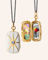 What's your story? Tell it in color. Give your story style with our White Enamel Gold Vermeil Rectangular Locket with a center blue sapphire. Perfect on its own or layered with your other favorite pieces, this is our slimmest Locket X Color® style yet! Locket holds two images.