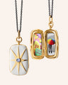 White Enamel Vermeil Rectangle Locket with Blue Sapphire