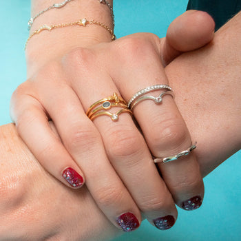 For a long distance gift idea in both sterling silver and 18k gold, please browse our collection of poesy stackable rings. Poesy rings date back 500 years. They were rings with engravings that were given as tokens of friendship and love. We have made them modern again, decorating them with enamel and gemstones and inscribing them with meaningful ideas like warrior, invincible, and love.