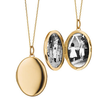 • Slim Viv Gold Locket Necklace Slim Viv Gold Locket Necklace with Point North Necklace and Mini Diamond and Sapphire "Fearless" Shield