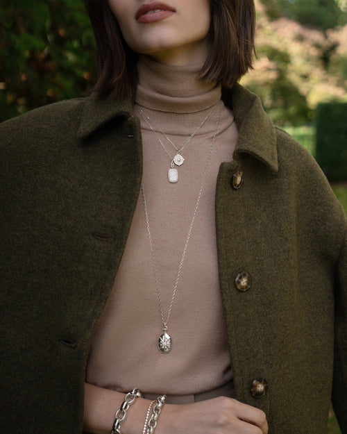 If the piece includes a diamond, or diamonds, it will create a diamond pendant necklace with just the right amount of sparkle to suit your taste. A solid gold piece will allow you to create a gold pendant necklace, while a silver pendant necklace can be built from that most coveted sterling silver pendant. Our favorite pendants are those that populate the core collections of our brand. A locket is in many ways the most personal pendant. The locket necklace it creates can hold your most treasured stories and inspirations. Whether it holds photos of your family and friends, or words that empower you, that locket added to a chain will be the perfect pendant necklace. Any of our charms in 18k gold or sterling silver are also pendants that can be inspiring. The grand themes of our charms like “cape diem”, “adventure” and “never fear” can serve as talismans to guide you each day. And finally, our poesy rings are a third collection that was originally designed to be pendants. As a brand, we loved how girls and women would add treasured family rings to a simple chain. This idea inspired us to create our poesy ring necklace collection. Poesy rings were common up to 500 years ago and were inscribed with messages of love and friendship. We make this idea new again, inscribing our modern day poesy rings with words of empowerment and romance, so they could be a collection of simple everyday pendant necklaces.