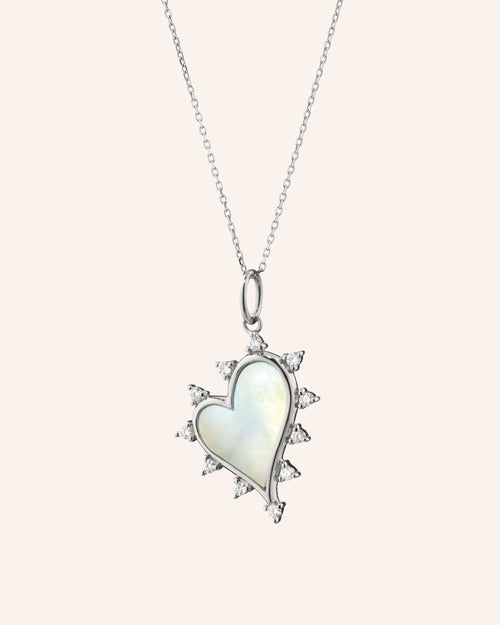 "Love" Heart Necklace with Mother of Pearl and Diamonds