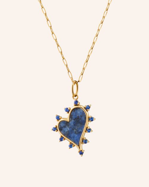 Midi "Love" Heart Necklace with Mother of Pearl and Sapphires