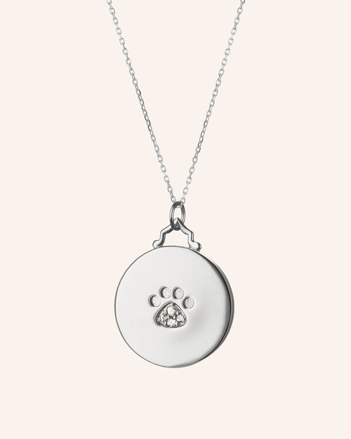 Small "Paw Print" Engravable Necklace with White Sapphires