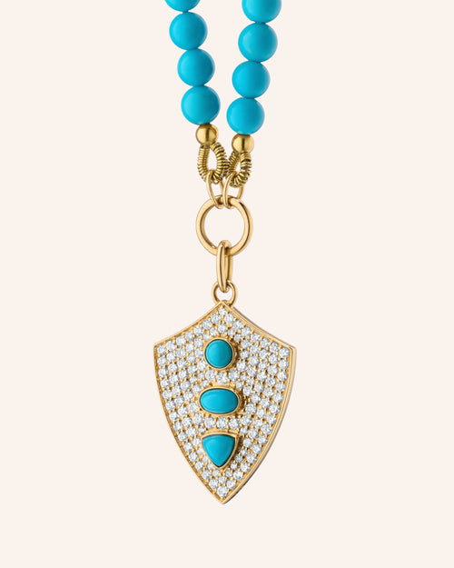 "Fearless" Shield Necklace with Turquoise and Diamonds