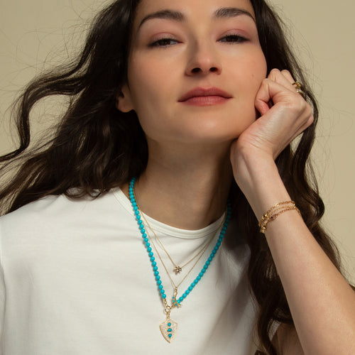 "Fearless" Shield Necklace with Turquoise and White Sapphires