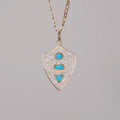"Fearless" Shield Necklace with Turquoise and Diamonds