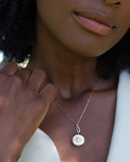 "Adventure" Compass Locket Necklace with White Sapphire