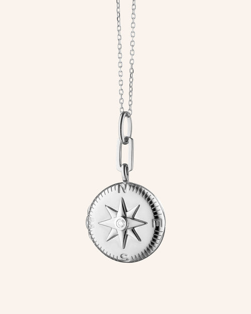 Mini "Adventure" Compass Necklace with White Sapphire