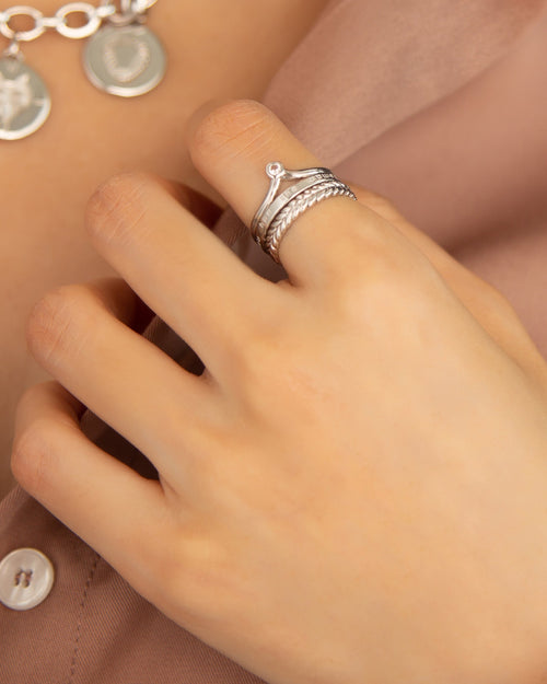 • Warrior Pavé White Sapphire Stackable Ring Poesy Stackable Rings