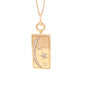 Material: 18K Yellow Gold. White Diamond Carat Weight: .12 cts; FG/VS2. Charm Measures: 7/8" Tall by 1/2" Wide. Chain Options: No Chain,17" Black Steel Chain (Loop at 16"), or 17" Yellow Gold Chain (Loop at 16"), or 22" Yellow Gold chain (Loop at 20"). Made in Thailand.