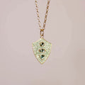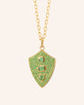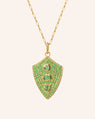 "Fearless" Shield Necklace with Green Tsavorites and Tourmaline