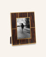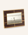 Showcase your favorite photo in a modern frame that will make a statement anywhere in your home. This Ebony Macassar Wood Frame features 24K Gold plated accents and is finished with a tan pebbled leather back that follows our 360 degree rule - both front and back must be exquisite in every detail so they look perfect from any angle.