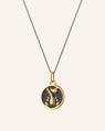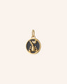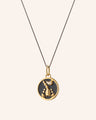 Material: 18K Yellow Gold over Sterling Silver and Black Enamel. White Sapphire Carat Weight: 0.021cts. Charm measures 1/2" in Diameter. Chain: No Chain or 17” Black Steel Chain (loop 16"). Charm Made in Thailand. Steel Chain made in Germany.