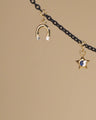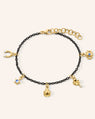 Make your own luck. This 18K yellow gold and black steel charm bracelet features iconic “luck” symbols to bring you good fortune. Lucky symbols include a diamond horseshoe, blue moonstone star, ladybug, clover and blue sapphire evil eye.