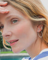 Our best selling Galaxy Wrap Hoop® in an elegant Oval shape. These Galaxy Wrap Hoop® earrings begin on your ear with beautifully cut round and pear shaped white sapphires. The 1 1/2" Tall oval sterling silver hoop then wraps gently from front to back hugging just behind the ear. They are designed to be timeless, luxury styles you will love to wear again and again.