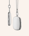 Sterling Silver, finished with rhodium, a precious metal similar in price to gold that protects our sterling silver jewelry from tarnishing. Locket Measures: 1 1/16" Tall, 3/4" Wide. Chain: 22” Silver Chain (loops at 20” and 18”). Made in Thailand.