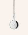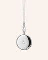 Sterling Silver, finished with rhodium, a precious metal similar in price to gold that protects our sterling silver jewelry from tarnishing. Locket Measures: 3/4" in Diameter. Chain: 18” Silver Chain (loops at 17” & 16”). Made in Thailand.