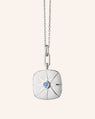 What's your story? Tell it in color. Give your story style with our White Enamel Silver Cushion Locket with a center blue sapphire. Perfect on its own or layered with your other favorite pieces. Locket holds two images