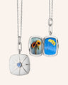 Your stories are important, let our white enamel and silver cushion locket help you tell them. Fill your locket with The Locket Bar®.